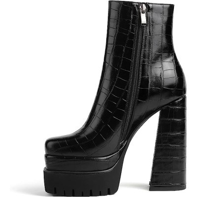 Platform Boots for Women, with Sassy Platform, Chunky Heel, Square Toe and Side Zipper Design