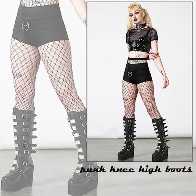 Womens Goth Knee High Boots Wedge High Heel Motorcycle Punk Combat Platform Boots