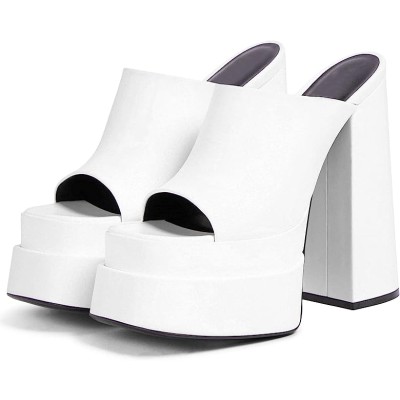 Womens Chunky High Heel Sandals Double Platform Slip On Slippers Open Square Toe