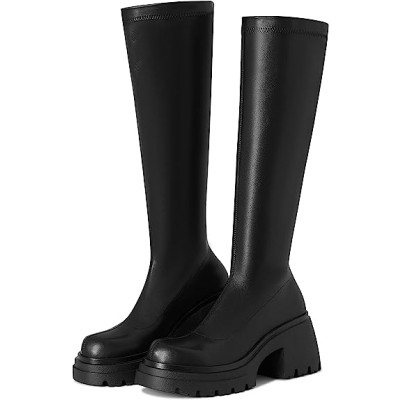Women's Go Go Boots Knee High Boots Platform Square Toe Chunky Block Heeled Boots